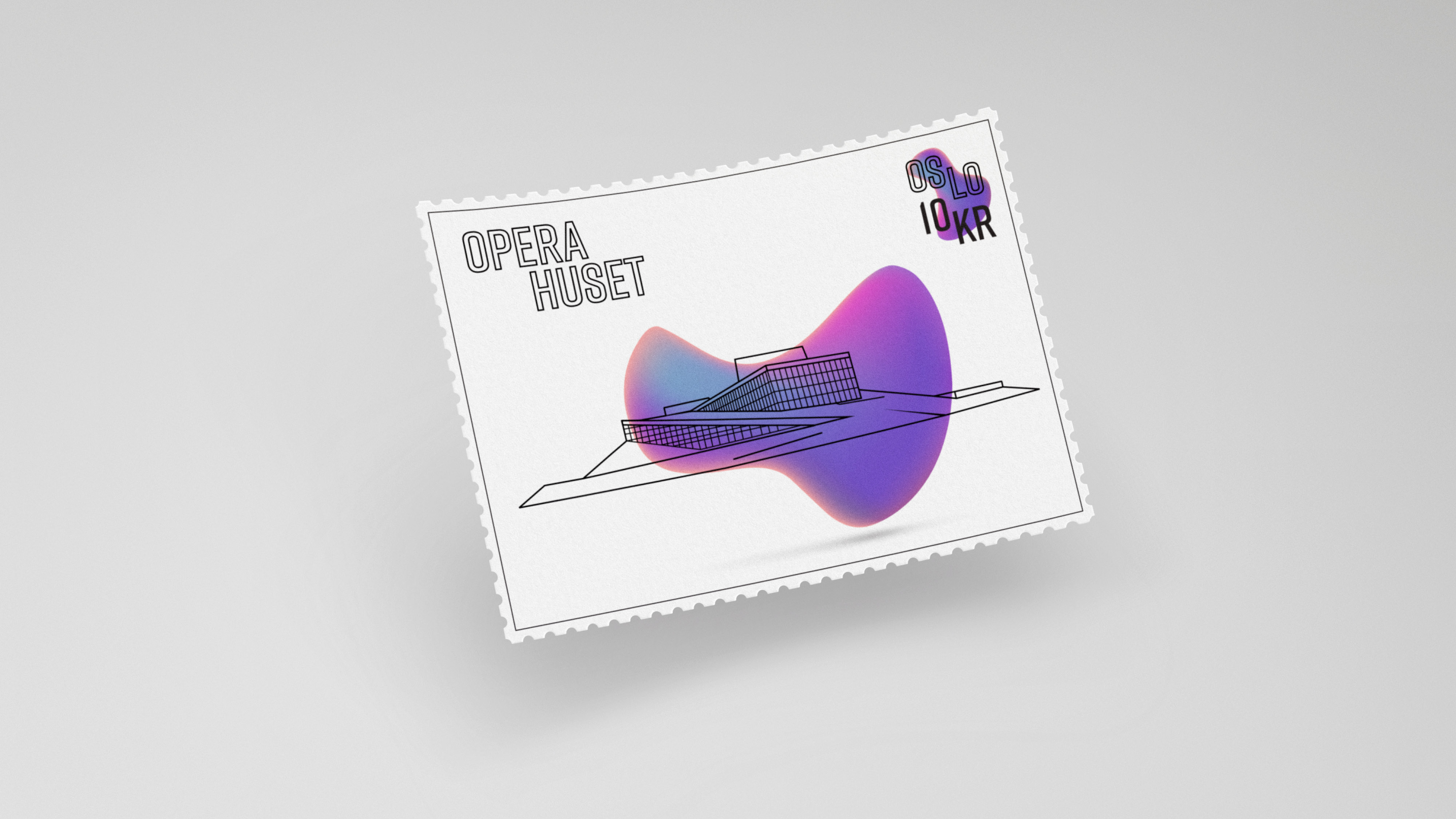 Vanuit deze gedachte ben ik gaan nadenken over een project waarin ik dit kan toepassen maar tevens ook andere technieken eigen maken in Illustrator. Het resulataat is een drieluik van bekenden gebouwen in Oslo. Deze elementen leende zich vervolgens uitstekend voor het maken van een series postzegels.
